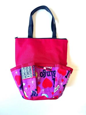 10 Pocket I Love Bingo Red Zipper Bag- EXTRA LARGE