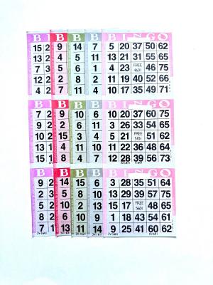 This color collated bingo paper sheets have 5Â different colors to play 5Â different games with 3 faces per sheet of bingo paper.Â