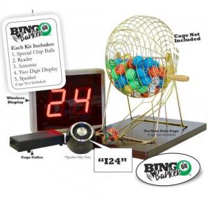 Kit comes complete with the Bingo Barker unit, as well as the wireless 2 digit LCD display, speaker, and computer chipped set of 1-75 bingo balls.