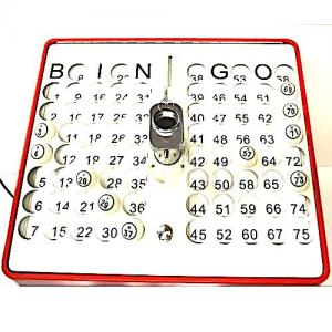 This new, quiet electric bingo blower with clear rounded view window to watch the mixing action of the bingo balls.